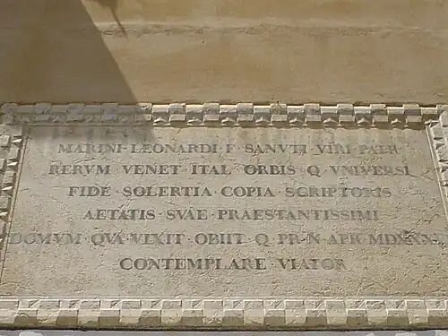 Sanuto began writing early. Aged fifteen, he wrote the Memorabilia Deorum Dearumque, on the antique gods and goddesses.[2] In 1483 he accompanied his cousin Mario, who was one of the three sindici inquisitori deputed to hear appeals from the decisions of the rettori, on a tour through Istria and the mainland provinces, and he wrote a minute account of his experiences in his diary. Wherever he went he sought out learned men, examined libraries, and copied inscriptions. The result of this journey was the publication of his Itinerario per la terraferma veneziana and a collection of Latin inscriptions.