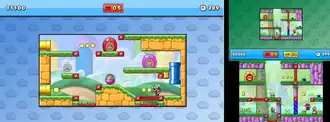 A Mario vs. Donkey Kong tech demo was revealed at Game Developers Conference in March 2014 to show off the Nintendo Web Framework, a set of tools for developers to make Wii U games with common simple programming languages such as HTML5.[5] In Nintendo's pre-E3 Digital Event video presentation, the game was confirmed for Wii U and was scheduled for release in 2015.[3] Nintendo later revealed the final title, release dates, and the Nintendo 3DS version in Nintendo Direct presentation held in January, in addition the game's support for cross-platform play and cross-buy concepts.[note 1][2] The game came in physical optical discs and 3DS game cards in Japan, and whilst Wii U and Nintendo 3DS game cases were available at retail in Europe, they did not include physical media, but rather a printed download code to be used in the respective Nintendo eShop.