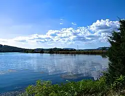 Nickajack Cave in Marion County, located 0.6 miles south of Shellmound Station on the west side of the Tennessee River, is one of the most historical caves in Tennessee.[17] It is currently part of a park run by the city of New Hope. A paved hiking trail leads to an observation deck at the entrance to the cave where visitors can watch the bats leave the cave at dusk.[18] The cave was used by tourists and as a show cave, but in 1968 the cave was flooded when Tennessee Valley Authority constructed Nickajack Dam 6 miles (9.7 km) downstream to replace the aging Hales Bar Dam.