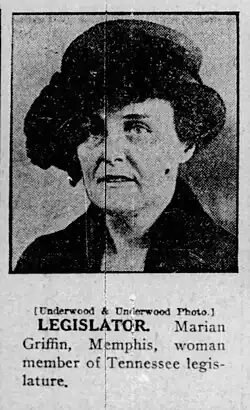 Marion Scudder Griffin (1879 – January 30, 1957) was an American lawyer, and the first woman to practice law in Tennessee.