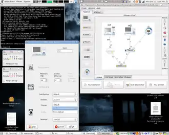 The main goal of Marionnet is the teaching of computers networks in university laboratories,[8] although it could be a valuable tool also for high schools. Despite being teaching-oriented Marionnet may be used to emulate networks for test or development purposes.[9] It is quite easy to set up, fast even with complicated configurations and the possibility of reverting filesystem changes on virtual machines makes it quite flexible.