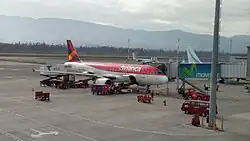 Mariscal Sucre International Airport[3] (IATA: UIO, ICAO: SEQM) is an international airport serving Quito, Ecuador. It is the busiest airport in Ecuador. It is located in the Tababela parish, about 18 kilometres (11 mi)[4] east of Quito, and because of its location it is also colloquially known as Tababela Airport. The airport currently serves as the main hub for Avianca Ecuador and the largest hub for LATAM Ecuador. It also served as the main hub for TAME, Ecuador's flag-carrier, before the airline was liquidated by the Ecuadorian government in 2020.[5] The airport opened in February 2013 and replaced the 53-year old airport of the same name.[6] The airport is named after independence leader Antonio José de Sucre. It was the first 5-star airport in the Western Hemisphere as rated by Skytrax.[7][8][9]