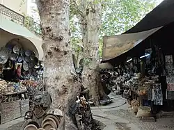 The site of the maristan today is occupied by a funduq (caravanserai-type building) which houses various shops. This building is located between Tala'a Kebira street and the Zawiya of Moulay Idris II. It opens onto a small public square on its west side, distinguished by the trees at its center, which was historically designated as the Souq el-Henna or henna market.[1][2][3][4]: 373–74