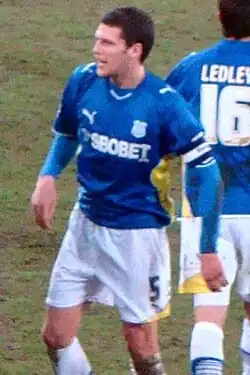 In the 2007–08 season, Hudson kept his first team place in the central defence, alongside either Cort or José Fonte.[43] He captained the side for the first time on 20 August 2007 during a 2–2 draw with Leicester City.[44] In a match against Sheffield United on 22 September 2007, he scored an own goal following a left-wing cross from Keith Gillespie, which Crystal Palace went on to win 3–2.[45] Hudson was able to make amends when he scored an opener against Burnley seven days later on 29 September 2007, in a 1–1 draw.[46] His performances continued to impress manager Taylor and he was offered a new contract, just before Taylor's sacking.[47] Under new manager Neil Warnock, Hudson scored his second goal of the season in a 2–0 win over Bristol City to start a 15 match unbeaten run that lasted until 28 January 2008.[48][49] He was later appointed captain midway through the season as the Eagles made the play-offs before being beaten by Bristol City.[50] Over the course of the season, Hudson made 49 appearances, missing one match during the season,[51] and scored twice in all competitions.