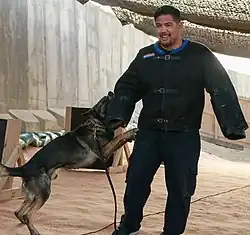 Muñoz in bite suit at Al Asad Air Base, Iraq, in 2018