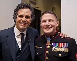 Ruffalo with Medal of Honor recipient Retired U.S. Marine Corps Cpl. Kyle Carpenter, 2014