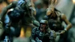The diorama was built through a collaboration between Los Angeles, California-based New Deal Studios and Stan Winston Studios. Director Rupert Sanders had actors stand in for the marines, capturing their facial expressions and using them as the basis of the miniatures. Character assets from Bungie, including alien models and armor, were recreated and rebuilt for reuse.[22] The twisted city ruins the diorama is set in were inspired by bombed-out Afghanistan suburbs. Special attention was paid to creating a photo-realistic setting which was recognizably Halo.[22]