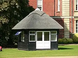In 1936, Marlborough House became the London residence of George V's widow, Queen Mary, who survived George by 17 years. In the grounds of the house remains her pet cemetery. A thatch-roofed rotating summer house built for her is still in place.[20] A plaque to commemorate Queen Mary was unveiled in 1967.[21]