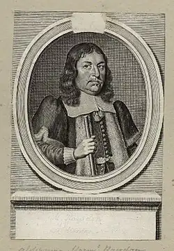 In 1655, after England's diplomatic rupture with Spain, Rawdon returned to England.[2] and during most of the rest of his life he resided with his kinsman Marmaduke Rawdon, at Hoddesdon, Hertfordshire.[1] He visited Dunkirk in 1662, ahead of its sale to France.[3] He invested in the Canary Company in 1664.[2]