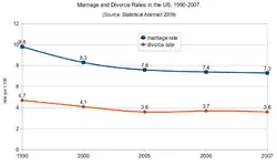 - ^ a b "Marriages and Divorces Number and Rate by State: 1990 to 2009" (PDF). U.S. Census. Archived from the original (PDF) on October 20, 2011.