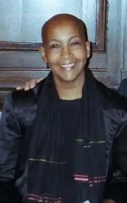 Three months after Hair opened, Hunt was on the cover of British high-fashion magazine Queen, the first Black model to appear on their cover.[3] In 1968, Hunt posed nude for photographer Patrick Lichfield after the opening night for Hair[17] and the photo appeared on the cover of British Vogue's January 1969 issue.[18] Almost 40 years later Hunt again posed nude for Lichfield,[17] recreating the pose for her Vogue cover five weeks after she had had her right breast and lymph glands removed to halt the spread of cancer.[19] The photo appeared on the cover of her 2005 book Undefeated, about her battle with cancer.[19] She was pleased to work with the photographer under such differing circumstances, although in her autobiography she expressed confusion as to why the photo has been so often reprinted.[6] Hunt has also been photographed by Lewis Morley and Horace Ové.[20]
