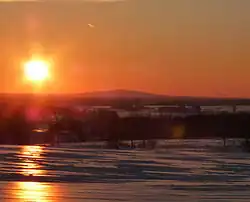 Wood County spans two of Wisconsin's five geographical regions. The northern part of the county is in the Northern Highlands, with mostly rich cropland with heavy clay soil, used for corn, soybeans, hay and dairy.[6] In the northwest corner the Marshfield moraine runs from Marathon County through Marshfield, Bakerville and Nasonville into Clark County.[7] The south and central areas from Babcock through Cranmoor and Wisconsin Rapids are in the Central Plain, flat and marshy - one of the major cranberry-producing centers of the United States.[6] The Wisconsin River cuts across the southeast corner, a corridor of sand flats, islands and oxbows. The river falls about 120 feet as it flows through the county,[8][9] driving several power dams. The remainder of the county is drained by smaller streams and rivers, punctuated by isolated hills like Powers Bluff.