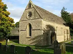 A chapel of ease was built by the de Meysey family in the late 13th century, at first subordinate to St Mary's, the parish church at Meysey Hampton. From 1329 the chapel functioned as a parish church, but by 1548 was no longer in use as the population was too small to maintain it. In 1648 the manor was bought by Robert Jenner (c.1584–1651), a North Wiltshire man who had prospered as a silver merchant in the City of London.[15] He paid for the derelict chapel to be rebuilt on its former site at Manor Farm, and for a few years it was again granted parish church status.[16]