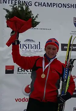 ![]() Marte Reenaas with gold medal at Ski-EOC 2010 | ||