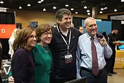 McSally won the August 28 Republican primary with 53 percent of the vote and faced Democratic nominee Kyrsten Sinema in the November general election.[49] The general election remained undecided for several days after election night until all ballots were counted in the close contest.[50] McSally held a lead by the end of election night, but it narrowed over the next few days as more ballots were counted.[50] During this time, both McSally and Sinema voiced support for counting all the ballots.[50] There was no evidence of any fraud.[51] On November 12, McSally conceded to Sinema, congratulating her on becoming Arizona's first female senator. Sinema won by almost 56,000 votes.[52][53] In May 2021, former deputy campaign manager Anthony Barry pleaded guilty to the theft of $115,000 campaign funds from the McSally campaign.[54]