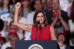 McSally was expected to run as the establishment candidate in the Republican primary, where her opponents included former state senator Kelli Ward and former Maricopa County Sheriff Joe Arpaio.[43] McSally, a strong fundraiser, was the preferred candidate of national Republicans and Arizona Governor Doug Ducey. McSally's history of criticizing President Donald Trump drew rebuke from conservative groups including the Club for Growth, the Senate Conservatives Fund, and FreedomWorks.[44] McSally had previously distanced herself from Trump, choosing not to endorse him in 2016 and calling his comments about sexual assault "disgusting" and "unacceptable."[45] But in the lead-up to announcing her candidacy for Senate, McSally began to embrace Trump, running ads echoing his conservative immigration policy positions.[46] Politico wrote: "Martha McSally wants to make one thing clear before she launches an Arizona Senate campaign: She's a big fan of President Donald Trump."[47]