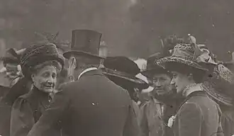 The Marquise de Mac Mahon remained loyal to the AF, in 1911 accepting the honorary presidency of the Dames d'AF. The AF emphasised that the committees of royalist ladies, hitherto under the authority of male royalist committees, were in crisis or in the process of being dissolved, and that some of them were joining de Mac Mahon.[20] The Marquise, who was hostile to Larègle, was one of the people who intervened with the Duc d'Orléans, who decided to dismiss Henri de Larègle and once again support the AF.[21] From then on, she was the leader of the Dames and Jeunes filles d'AF (Ladies and Young Girls of the AF), leading them in parades on Joan of Arc's feast day.[22]