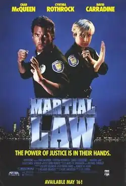 Martial Law is a 1991 American action/martial arts film written by Richard Brandes, produced by Kurt Anderson, directed by Steve Cohen and stars Chad McQueen, Cynthia Rothrock and David Carradine.