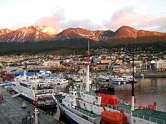 The Martial Mountains are a mountain range in Isla Grande de Tierra del Fuego, an island of Argentina and Chile. The mountain range is located east of Cordillera Darwin, just north of Ushuaia city in Argentina, along the Beagle Channel strait.