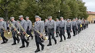 The bugle call is a short tune announcing scheduled and certain non-scheduled events on a military installation, battlefield, or ship. These short music pieces are played from an instrument called the bugle, it has been used by militaries as means of communication. This instrument can be heard from afar and in very noisy environments (during battle). It is a very effective way of giving orders and communicating. Although no longer required by armies for communicating, these music pieces are still played for tradition and during ceremonies.[1] Well-known bugle calls include "Taps", "The Last Post", and "Reveille", and also El Degüello.