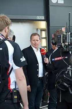 Having largely retired from motor racing, Brundle became a highly regarded commentator on British television network ITV, whom he joined when they began Formula One coverage in 1997, initially alongside Murray Walker, and from 2002 James Allen. Brundle joined the BBC's commentary team alongside Jonathan Legard when they won back the rights to show F1 from 2009. Before the start of the 2011 season, the BBC announced that Brundle was being promoted to lead commentator and would be joined by fellow former F1 driver, David Coulthard.[9] He signed for Sky Sports' coverage at the end of 2011.[10] At Sky Brundle returned to a co-commentary role, working alongside lead commentator David Croft.