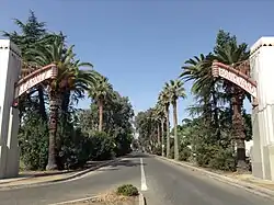 The French-style avenue leading to his estate, now called Kearney Boulevard, was completed in 1892 and was a triple road with a wide central lane for light carriages, a northern lane for wagons, and a southern lane for equestrians and bicyclists. The landscape design alternated eucalyptus and palms with pink and white oleanders planted beneath for color. The avenue runs from east to west and has been described as one of the most "striking drives in all California".[10]