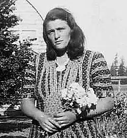 Martina Gangle Curl, born December 1906 in Woodland, Washington, was one of seven children. Born into a migrant family of Austrian and Swedish descent, Curl grew up in poverty and began work as a fruit-picker at the age of eight.[1] She attended a small country school until 1920, when she moved to the Lents district of southeast Portland to live with her grandmother.[2] While living with her grandmother she attended Franklin High School where she excelled in math and physics.[1] During her high school career Curl worked part-time as a housekeeper for a local family, who encouraged her to expand her knowledge through literature. Martina started to keep a dictionary which she used to look up unfamiliar words, and avidly read Charles Dickens and Greek dramas. After Curl graduated in 1924, she received a $200 loan from her employer to use towards her education.[1] She spent a year teaching at Western Oregon University (formerly the Oregon Normal School), and afterwards worked as an elementary school instructor in Portland.[2]