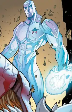 Martinex is a member of the genetically engineered human colonists whose traits were designed for survival under the cold conditions of the dwarf planet Pluto. He possesses enhanced strength, stamina, and durability. His skin is also composed of an organic silicon crystal. Martinex has the ability to convert bodily energy into laser-like beams that he can manipulate the temperature of. He could even withstand all conventional forms of injury. Martinex must rest and replenish his powers after using them at maximum output for a half-hour.[20]