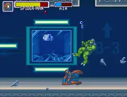 • Spider-Man: The fastest character in the game, but also the weakest. His attack lasts the longest. His low stance allows him to dodge some attacks without having to crouch. Can climb walls by pressing jump near them (speed type).