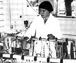 Allen was accepted as a Ph.D. student of the University of California by Sam Ruben in Berkeley.[12][13][14] Allen is listed as an assistant at the Lawrence Radiation Laboratory at the University of California in Berkeley for 1941-42[2][15] and as a chemist for the Manhattan District for 1942-44.[2] While working with Ruben, she used radioactive tracers to study photosynthesis and chlorophyll.[4][16]