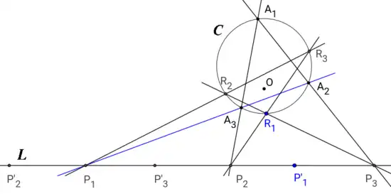 Such a projective apparatus makes it possible, given a point in the plane, to determine the lines that admit this point as orthopole. In the general case, there are four of them (including the line at infinity and the complex lines if any).