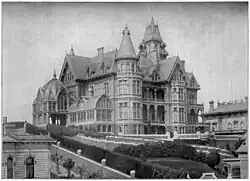 Mary Hopkins developed her interest in grand architecture during this marriage. She convinced her husband to build a grand estate in San Francisco to match those of the other railroad tycoons of the era. The house was furnished by Herter Brothers, and was completed in 1880 (two years after Mark Hopkins' 1878 death). The house was later used to house the San Francisco Art Institute. The house was destroyed in a fire resulting from the 1906 San Francisco earthquake.