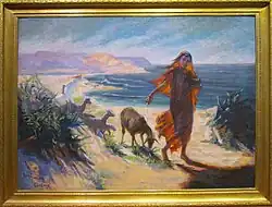 From about 1899[9] until she returned to Athens in 1914[10] with the outbreak of World War I, Franklin spent summers in Tunis and Carthage, North Africa, collecting sketches and studies to create large canvases when she returned to her studio on the boulevard de Montparnasse in Paris.[11]