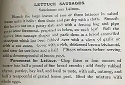 "Lettuce Sausages" recipe in Novel Dishes for Vegetarian Households, 1893.