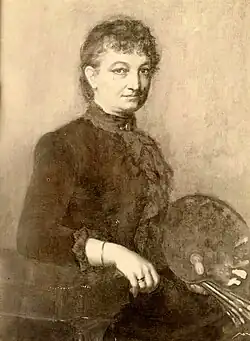 As a pioneer for women's art in Italy and America, she was the first woman admitted to the Accademia di Belle Arti, "Academy of Fine Arts", of Florence.[1] Born in Italy and raised in Memphis, TN, Mary Solari participated as a contestant and judge at the 1893 World's Fair in Chicago (World's Columbian Exposition), where she was the only Southerner and woman on the panel of the international jury of award.[2] Solari exhibited her work at the Woman's Building at the 1893 World's Fair.[3] Her artwork was also displayed at the 1897 Tennessee Centennial, where she received first prize for oil painting, first and second prizes for watercolor, first prize for crayon, first prize for landscape, and first prize for overall collection.[4] She also displayed her works at the 1904 St. Louis Exposition, where she was awarded multiple medals.[5] She is renowned for her artwork, and considered one of the best artists from the State of Tennessee.[6][7] In 1859, Mary's sister, Catherine Solari, married Domenico Canale, who later became a major alcohol and produce distributor throughout the Southern United States.