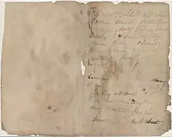 A few weeks later a party of mainland Aboriginal Guugu Yimithirr (or Dingaal[3]) people made one of their habitual seasonal trips by canoe to the island, where Robert Watson had set up his household in a stone structure close to a small creek, the island's only supply of fresh water. Watson had probably also inadvertently trespassed on an Indigenous ceremonial ground normally taboo to women and children.[1] They may have gone to investigate smoke on the island, which was sacred to them.[3] The Aboriginal people attacked Ah Sam, who suffered seven spear wounds, and Ah Leung was killed in a vegetable garden he was tending. Watson frightened off the group by firing a shotgun and then, with a small supply of food and water, put to sea in the iron sea cucumber tank, hoping to be picked up by a passing vessel. The party drifted from 2 to 7 October,[2] occasionally landing on reefs and islets. Her final diary entry ended "No water. Near dead with thirst".[n 1]