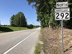 MD 292 begins at an intersection with MD 298 (Lambs Meadow Road) south of Still Pond. Still Pond Road continues south as a county highway that passes the historic home Shepherd's Delight on its way to MD 213. MD 292 heads north as two-lane undivided Still Pond Road, which passes the historic home Hebron on its way to the village of Still Pond. Within the Still Pond Historic District, the highway turns west at an intersection with the western terminus of MD 566 (Still Pond Harmony Road) and Main Street adjacent to the George Harper Store. MD 292 leaves the village, crosses the headwaters of Stillpond Creek, and curves north at Bessicks Corner Road, a portion of which is unsigned MD 864. The highway's name changes to Main Street upon entering the town of Betterton. MD 292 passes through the Betterton Historic District and makes a sharp turn to the east immediately before reaching its northern terminus at Betterton Beach Park on the Sassafras River where that river enters the Chesapeake Bay.[1][2]