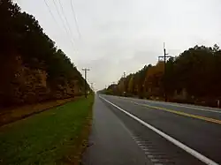Before leaving the city, the route intersects MD 460, also known as Hall Highway, immediately accessible only from the southbound carriageway.[1] MD 460 provides a direct link to McCready Memorial Hospital. Access to that route from northbound MD 413 is given by Wynfall Avenue, which the road intersects farther south.[2] Very soon after, it intersects MD 358 (Jacksonville Road), which heads north, and Somerset Avenue, which heads south.[1][2] Past the MD 358 intersection, the road narrows to two travel lanes with the median becoming a center left-turn lane as many businesses and side streets front the road. The route becomes the Crisfield Highway, which it is known as for the remainder of its journey. After intersecting Silver Lane, the left turn lane ends, and MD 413 becomes a rural, two-lane undivided highway with full shoulders, exiting Crisfield's corporate limits just north of the Sherwin–Williams (former Rubberset) entrance and continuing past the old site of Carvel Hall Cutlery.[1][2]