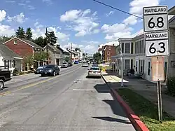 | 7.91 | 12.73 | MD 63 turns east onto Potomac Street; north end of concurrency with MD 68; south end of concurrency with US 11 | |||