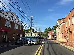 Maryland Route 725 (MD 725) is a state highway in the U.S. state of Maryland. The state highway runs 1.86 miles (2.99 km) from Brown Station Road east to U.S. Route 301 (US 301) within Upper Marlboro. MD 725 is the old alignment of MD 4 through the county seat of Prince George's County. What is now MD 725 was constructed in the mid- to late 1910s and became MD 4 in 1927. After MD 4 bypassed Upper Marlboro in the early 1960s, the old highway through town became part of MD 408. After the Prince George's County segments of MD 408 were removed in the late 1970s, the remaining state-maintained highway through Upper Marlboro became MD 725.