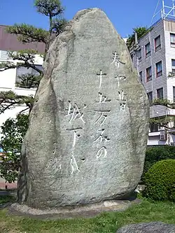 Masaoka Shiki (正岡 子規; Japanese pronunciation: [ma.saꜜ.o.ka | ɕi̥.kʲiꜜ, -sa.o.ka ɕi̥.kʲiꜜ],[2] October 14, 1867 – September 19, 1902), pen-name of Masaoka Noboru (正岡 升),[3] was a Japanese poet, author, and literary critic in Meiji period Japan. Shiki is regarded as a major figure in the development of modern haiku poetry,[4] credited with writing nearly 20,000 stanzas during his short life.[5] He also wrote on reform of tanka poetry.[6]