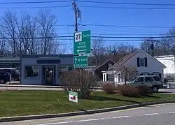 Route 27 is a 73.44-mile-long (118.19 km) south–north state highway in eastern Massachusetts. Its southern terminus is at Route 106 in Kingston and its northern terminus is at Route 4 in Chelmsford. Along the way it intersects several major highways including Route 24 in Brockton, U.S. Route 1 (US 1) in Walpole, Route 9 in Natick, US 20 in Wayland, Route 225 in Westford, Route 2, Route 119, Route 2A, and Route 111 all in Acton.