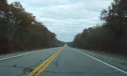 Route 88 is a two-lane expressway or "Super-2." Route 88 (like other such roads) is peculiar in its design in that, while it has at-grade intersections with town roads and is not divided by barriers or grass median between the Fontaine Bridge and Old County Road (except at intersections), there is no development of any kind that abuts the route directly; the only property that comes close is an ice cream stand on the southeast corner of Route 88 and Hixbridge Road, but even this only has a driveway from Hixbridge Road.