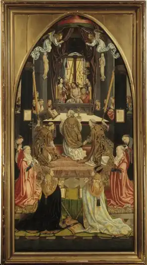 The notname Master of the Aachen Altar is given to an anonymous late gothic painter active in Cologne between 1495 and 1520[1] or 1480 and 1520,[2] named for his master work, the Aachen Altar triptych owned by the Aachen Cathedral Treasury. Along with the Master of St Severin and the Master of the legend of St. Ursula he is part of a group of painters who were active in Cologne at the beginning of the sixteenth century and were Cologne's last significant practitioners of late gothic painting.