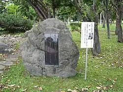 - Mashike: the site of his crossing the Nobusha River (信砂川) in Ansei 3 (1856) (Municipal Historic Site)[18]