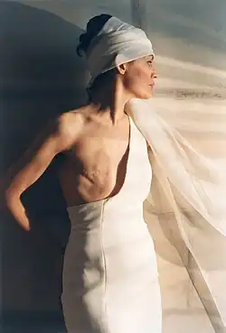 In the 1970s she modeled for Fabrizio Gianni in Italy, Christian Dior in France and Scott Barrie in NYC among others. In the late 1970s, Matuschka was the house model for The House of Julio. In 1978, the courtier designer Charles James proclaimed Matuschka to be "The Model of the Future".[15] Videographer Anton Perich frequently filmed Matuschka,[16] and broadcasts featuring her interviews at Bonwit Teller, catwalks and fittings at the Chelsea Hotel (with Couri Hay[17] and Charles James) and a 'couch cutting creation out of styrofoam'[18] with John Chamberlain (for the artist John R. Hersey) at the Dakota have been aired on Cable TV, Channel J, since the 1970s. Extensive video and still footage of Matuschka working with Charles James (by Anton Perich) was exhibited at the National Arts Club (NYC) in a show entitled Beneath the Dress[19] in 2014.