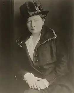 During World War I, Wetmore served on the Committee on Women's Defense Work, and was a member of the National Patriotic Relief Committee, and worked with Herbert Hoover, then the National Food Administrator.[2] She was also a member of the American section of Committee for Relief of Belgian Prisoners in Germany.[9] Though she never supported the suffrage movement,[10] she hoped that war work with empower women to peacetime reforms: "If some of the war enthusiasm can be rekindled and women made to understand and see and then in mass demand for their children what the Government, in honor bound, is obligated to give them, there would be no difficult in solving the school problem," she proclaimed in a 1920 speech. "The coming generation would be finer and women, consequently, finer citizens."[11]