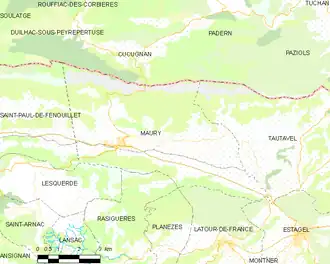 Map of Maury and its surrounding communes
