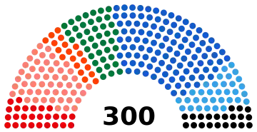 Voting is mandatory;[19] however none of the legally existing penalties or sanctions have ever been enforced.[20][21] 250 seats will be distributed on the basis of proportional representation, with a threshold of 3% required for entry into parliament. The other 50 seats will be awarded to the party or coalition that wins a plurality of votes, according to the election law. Parliamentary majority is achieved by a party or coalition of parties that command at least one half plus one (151 out of 300) of total seats. Blank and invalid votes, as well as votes cast for parties that fall short of the 3% threshold, are disregarded for seat allocation purposes.