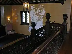 Mayslake Hall features a library, kitchen, private study, numerous bedrooms and bathrooms, servants' quarters, and other rooms. Francis Peabody's private study contains a secret staircase leading to a basement.[4]